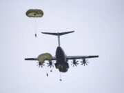 In a series of day and night sorties, paratroopers were dropped simultaneously from both side exit doors over Everleigh Drop Zone on Salisbury Plain.