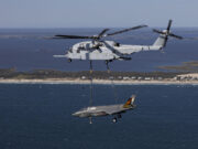 A U.S. Marine Corps CH-53K King Stallion helicopter has transported an F-35B Lightning airframe.