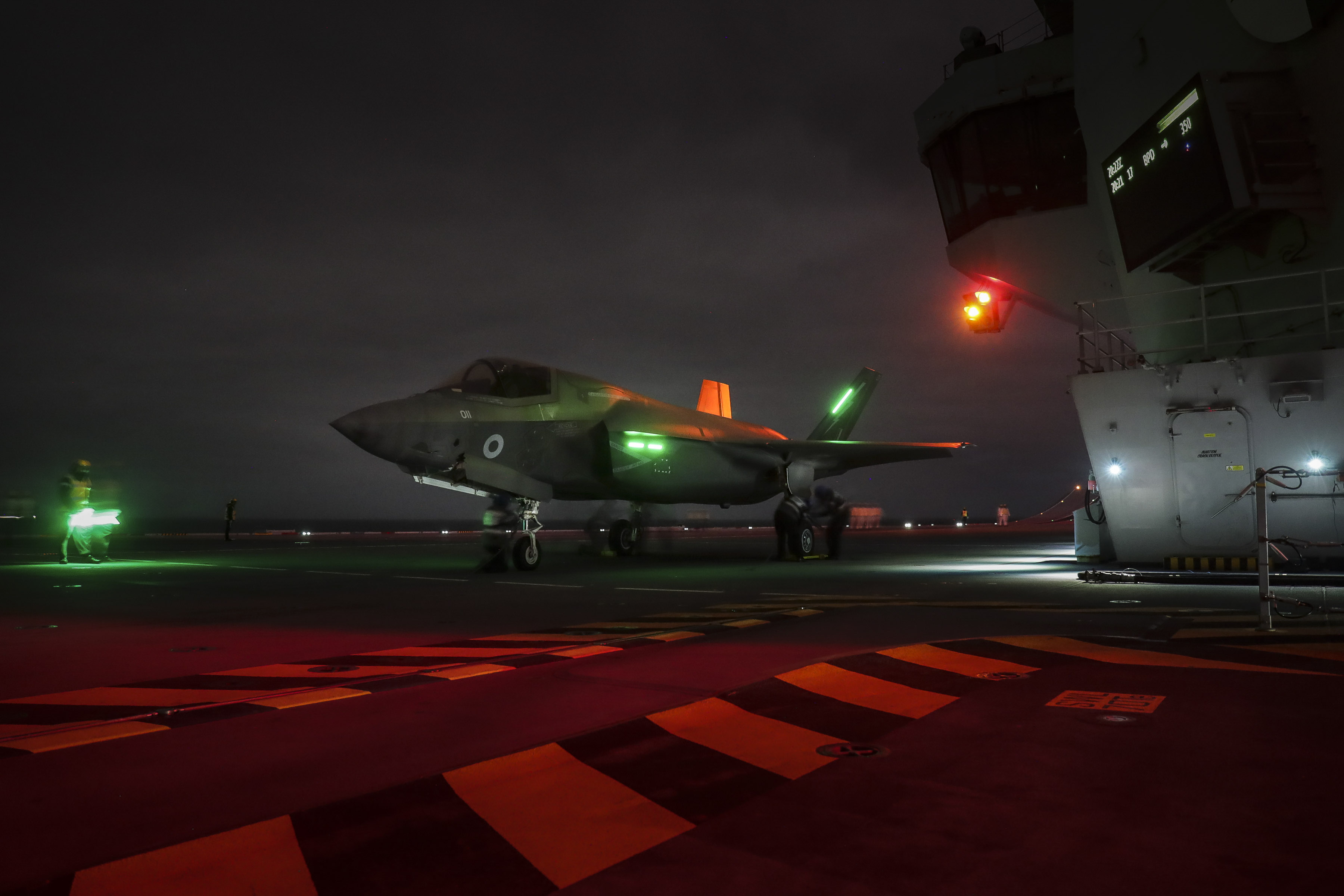 Four F-35 Lightning jets have completed the first nighttime carrier landings on HMS Queen Elizabeth in UK waters.