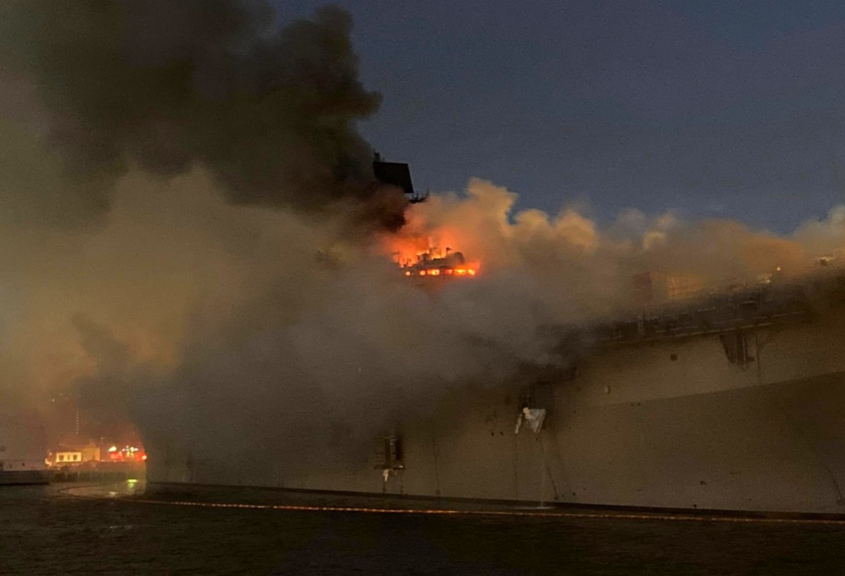 An explosion has occurred onboard the USS Bonhomme Richard while in her home port at Naval Base San Diego undergoing maintenance, resulting in a significant fire.