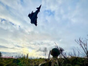 A striking image shared by the Royal Armoured Corps captures a Eurofighter Typhoon flying low over a soldier during NATO exercises in Estonia.