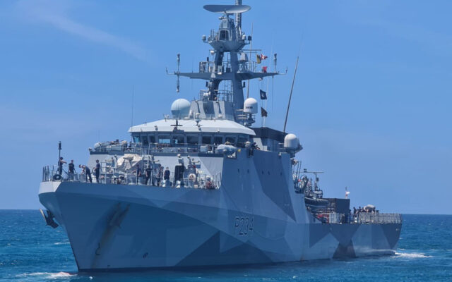 HMS Spey recently concluded a productive stay in Okinawa, Japan, marked by a watch handover and the awarding of the King's Coronation Medal to several crew members.