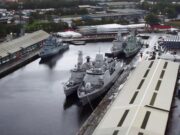 Drone images show warships from Portugal, Belgium, the Netherlands, and Germany docked in Glasgow.