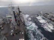 RFA Tidespring has shared some impressive footage showing the vessel refuelling HMS Portland, a Type 23 Frigate.