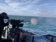 HMS Portland engaged in a series of exercises, including a Heavy Machine Gun shoot, aimed at maintaining the crew's operational proficiency.