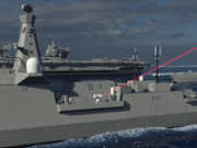 An animation depicts how a new British laser weapon could defend a Queen Elizabeth class aircraft carrier from threats at sea.
