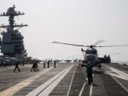 A Royal Navy Wildcat helicopter has become the first British aircraft to land on the world's largest warship, the USS Gerald R Ford, as detailed in recent tweets.
