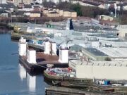 Drone shots catch glimpse of warship fitting out in Glasgow