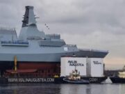 HMS Glasgow, the first of eight Type 26 Frigates being built on the Clyde, has reached a major milestone as she successfully entered the water for the first-ever time today.