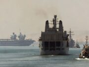 HMS Queen Elizabeth and her Carrier Strike Group are heading north through the Suez Canal on the return leg of their global deployment.