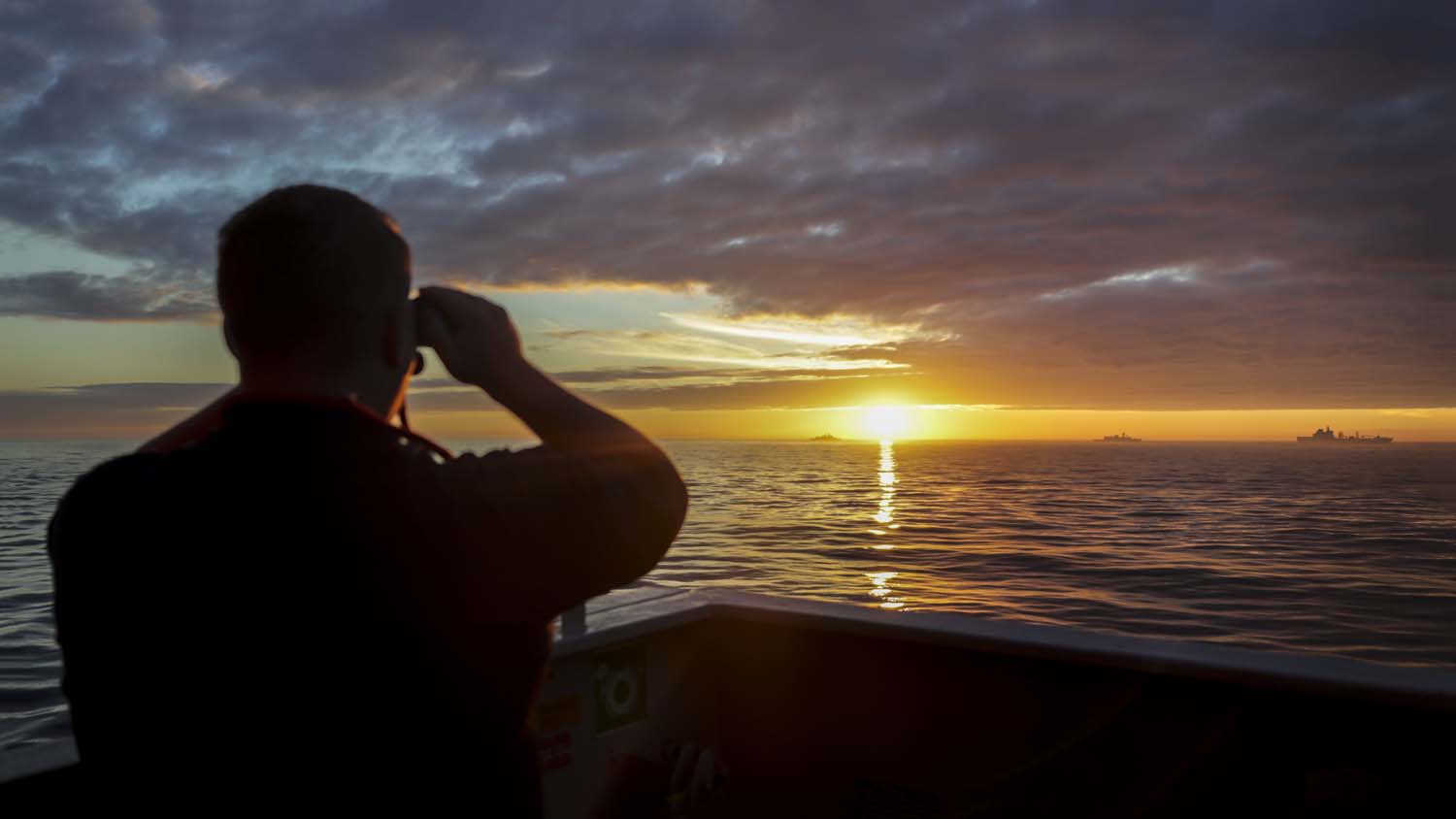 Tanker RFA Tideforce rendezvoused with Canadian and Portuguese warships in the narrows between Denmark and the Scandinavian peninsula to support ongoing NATO operations.