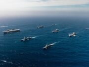 Two aircraft carriers, 21 warships, three submarines, 41 fast jets, 19 helicopters, ten patrol aircraft and more than 8,000 personnel "sends a strong message" says the Royal Navy's Commodore Blackmore.