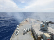 HMS Spey was tasked with evading a French frigate in the Java Sea, followed by a simulated aerial attack by fast jets launched from Charles de Gaulle.