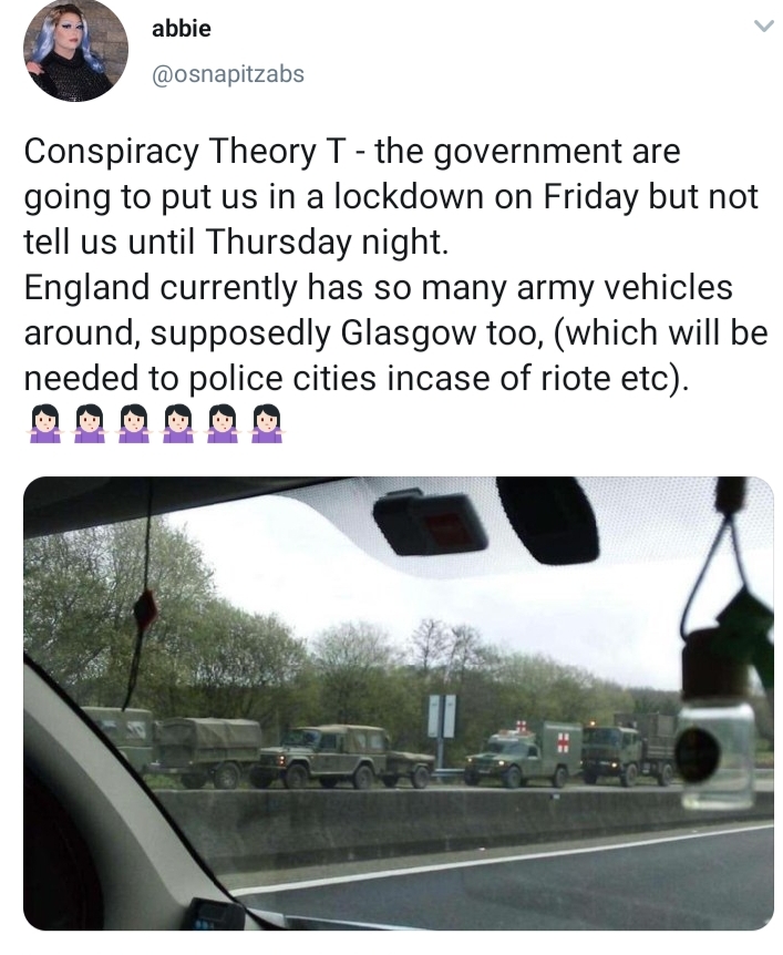 You gonna get a lot of these social media Idiot nob heads at the moment ,the film Contagion predicted a lot of thing’s this was one of them. There is enough idiot conspiracy theorise in the world,a lot from the Russian trolls to be said ,we do not need anymore thank you.