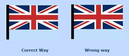 So, for context, a Union Flag is said to be ‘distressed’ or ‘backwards’ if the broader (wider) diagonal white stripe is not at the top on the side of the flag nearest the flagpole. You can read more about that here.
