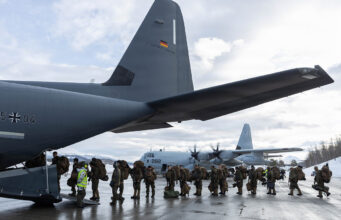 A U.S. Marine Corps rifle company has been airlifted in the Arctic by a joint French-German air transport squadron for the first time.