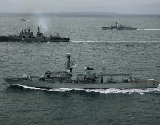 HMS Somerset, HMS St Albans, HMS Mersey and RFA Tideforce were involved in operations to shadow multiple Russian vessels, including a surfaced submarine, as they transited the English Channel and North Sea.
