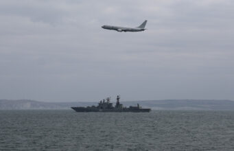 British and Italian carrier air and sea power converged over the Mediterranean as Italian and UK F-35B jets, joined by Italian Navy AV-8B Harriers, flew in formation over HMS Prince of Wales and Italy’s flagship Cavour.