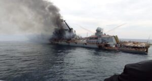 Photos show Russian cruiser on fire and sinking