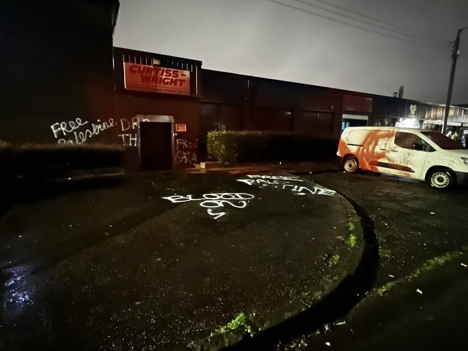 Police are investigating after activists vandalised a Glasgow industrial facility operated by Component Coating and Repair Services, part of Curtiss-Wright.