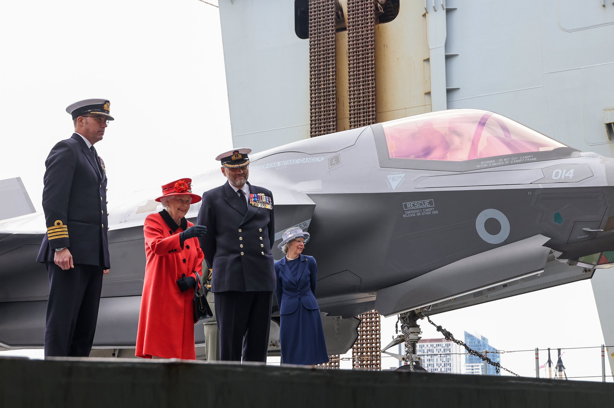 Glad to see they didn’t take her majesty’s picture in front of a US Marine F35!