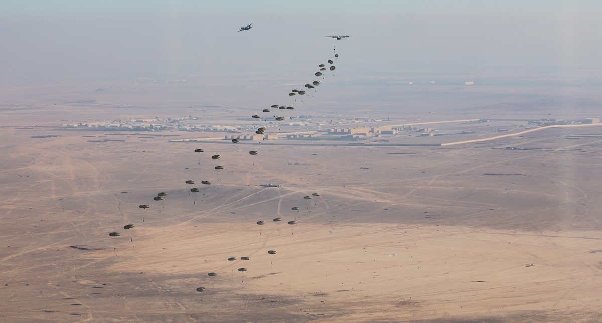 The sortie included dispatching between 70 and 80 paratroopers from two separate Hercules aircraft. A third C-130J dispatched a Container Delivery System.