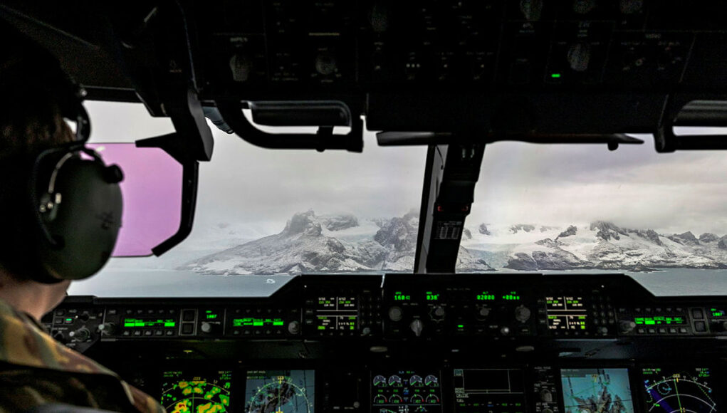 To improve situational awareness and flight safety, a Chilean Air Force captain joined the UK crew for the southern sortie, providing regional expertise and support with local procedures.
