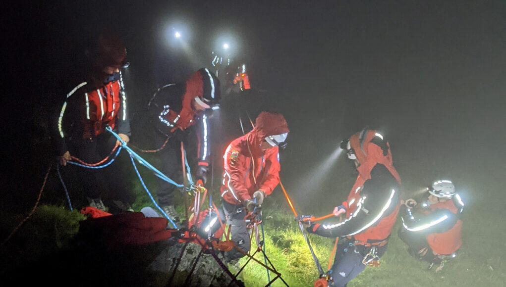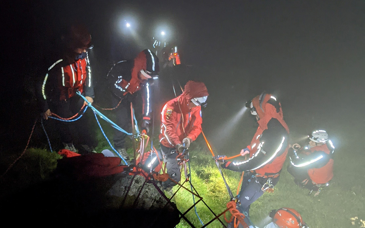 They worked with @ovmro in the cold & dark, lowering the walkers 500m by rope in stages, before walking them to safety.