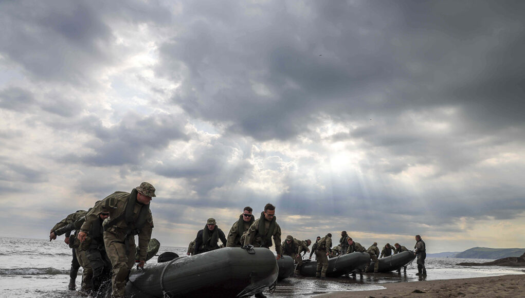 Marines from 47 Commando Raiding Group have been practising in Cornwall, conducting drills on Tregantle Beach using their small Inshore Raiding Craft, which is designed for covert coastline landings. They performed ‘surf drills’ to master manoeuvring their raiding craft in challenging conditions.