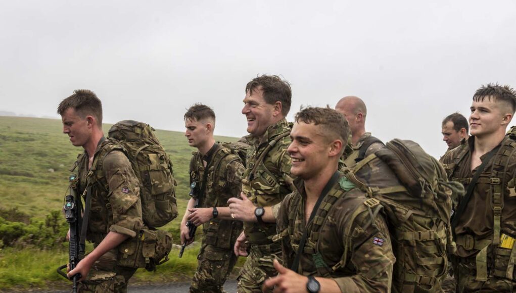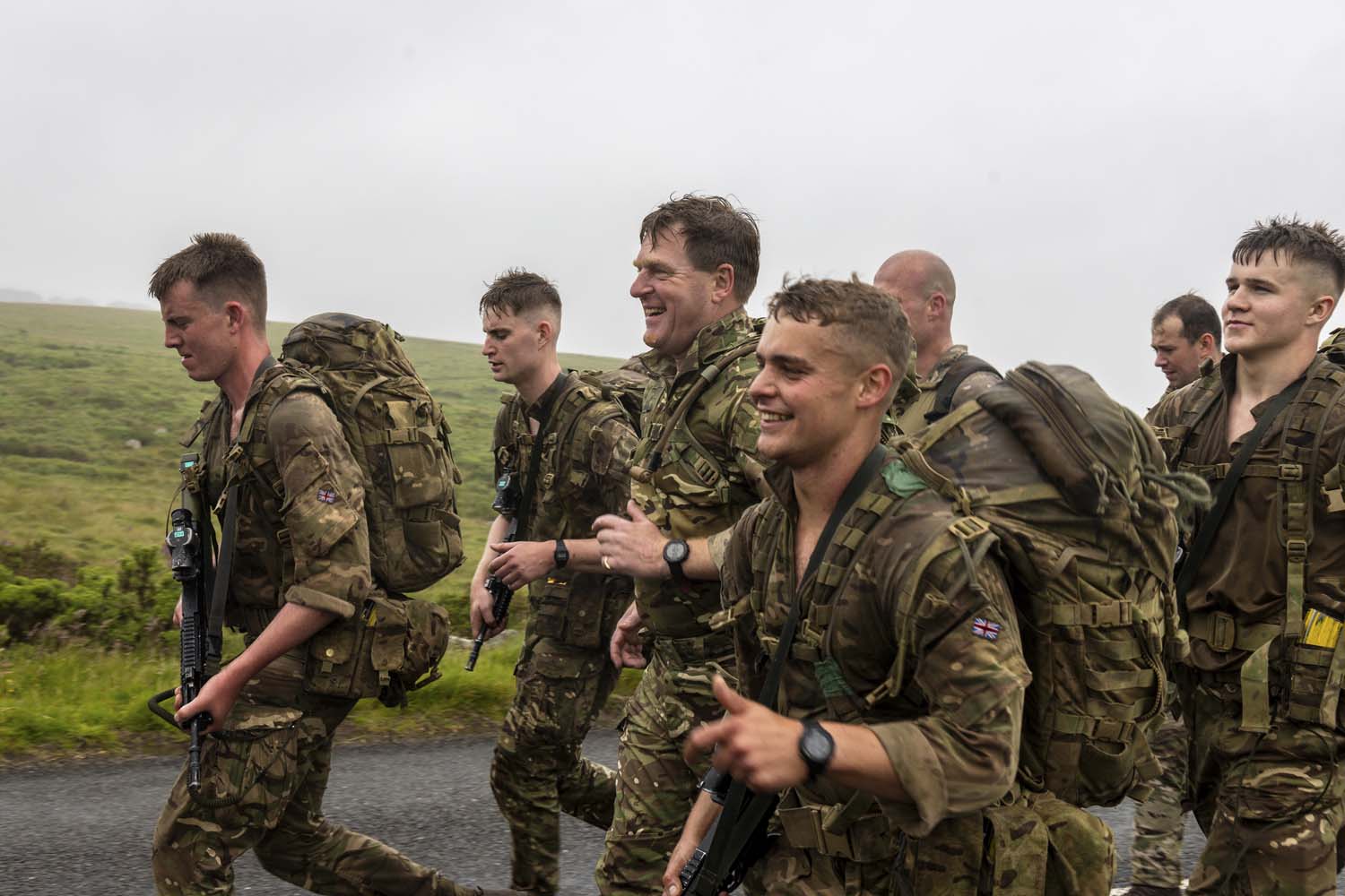 Admiral Key accompanied the men of 335 Recruit Troop from Commando Training Centre Lympstone on their challenging ’30 miler’ across Dartmoor.
