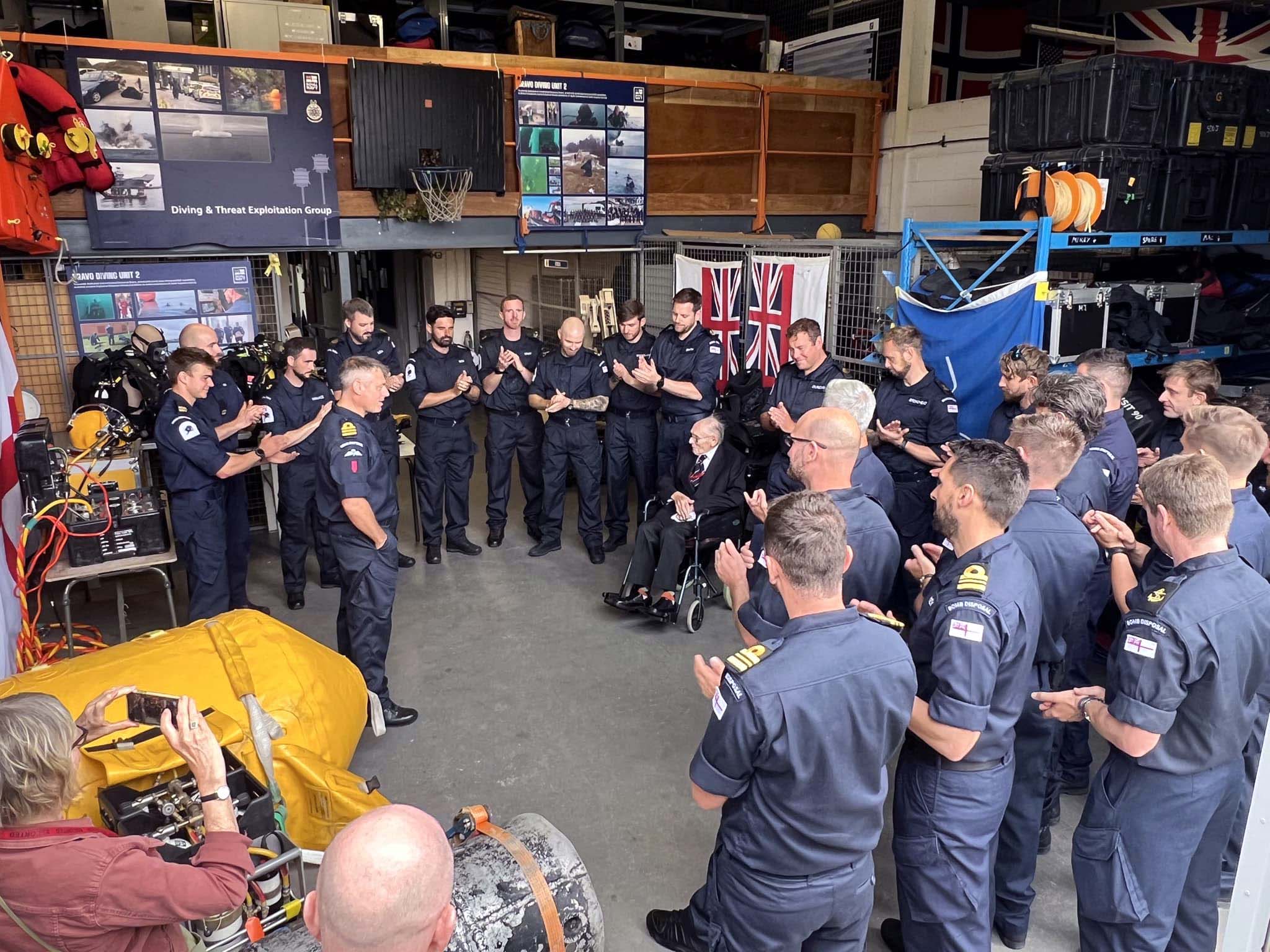 Veteran clearance diver Ginge Fullen discovered Boyd’s wartime exploits while researching for a book on the history of bomb disposal. This led to an invitation for Boyd and his family to visit the Diving and Threat Exploitation Group on Horsea Island in Portsmouth. During his visit, Boyd watched modern divers demonstrate their skills and was introduced to the advanced equipment used today, a far cry from the rudimentary gear of his era.