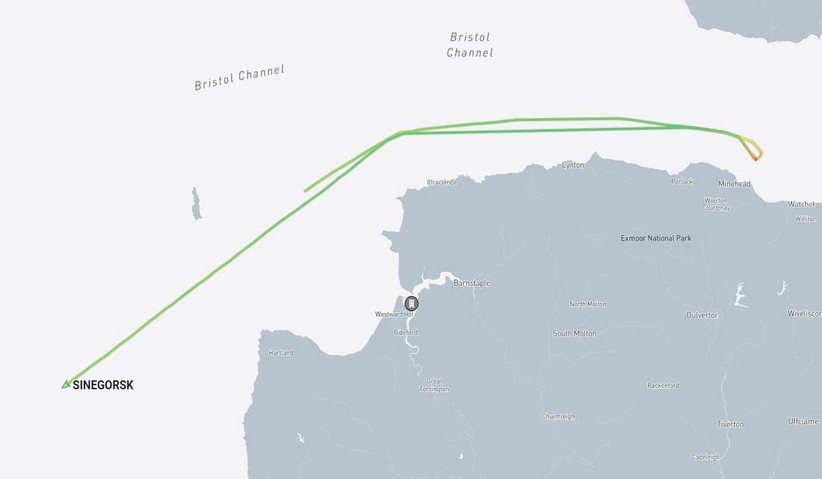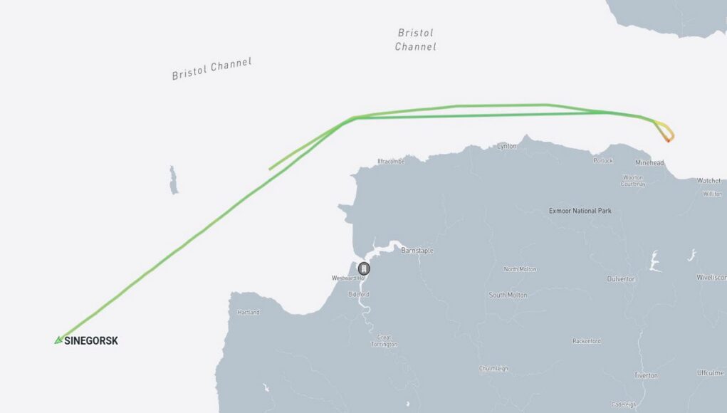 Data we’ve been looking at showed the vessel remaining inside UK territorial waters for several hours before leaving the area. The data does not indicate that the ship attempted to enter a UK port or make use of port services during its time off the Somerset coast.