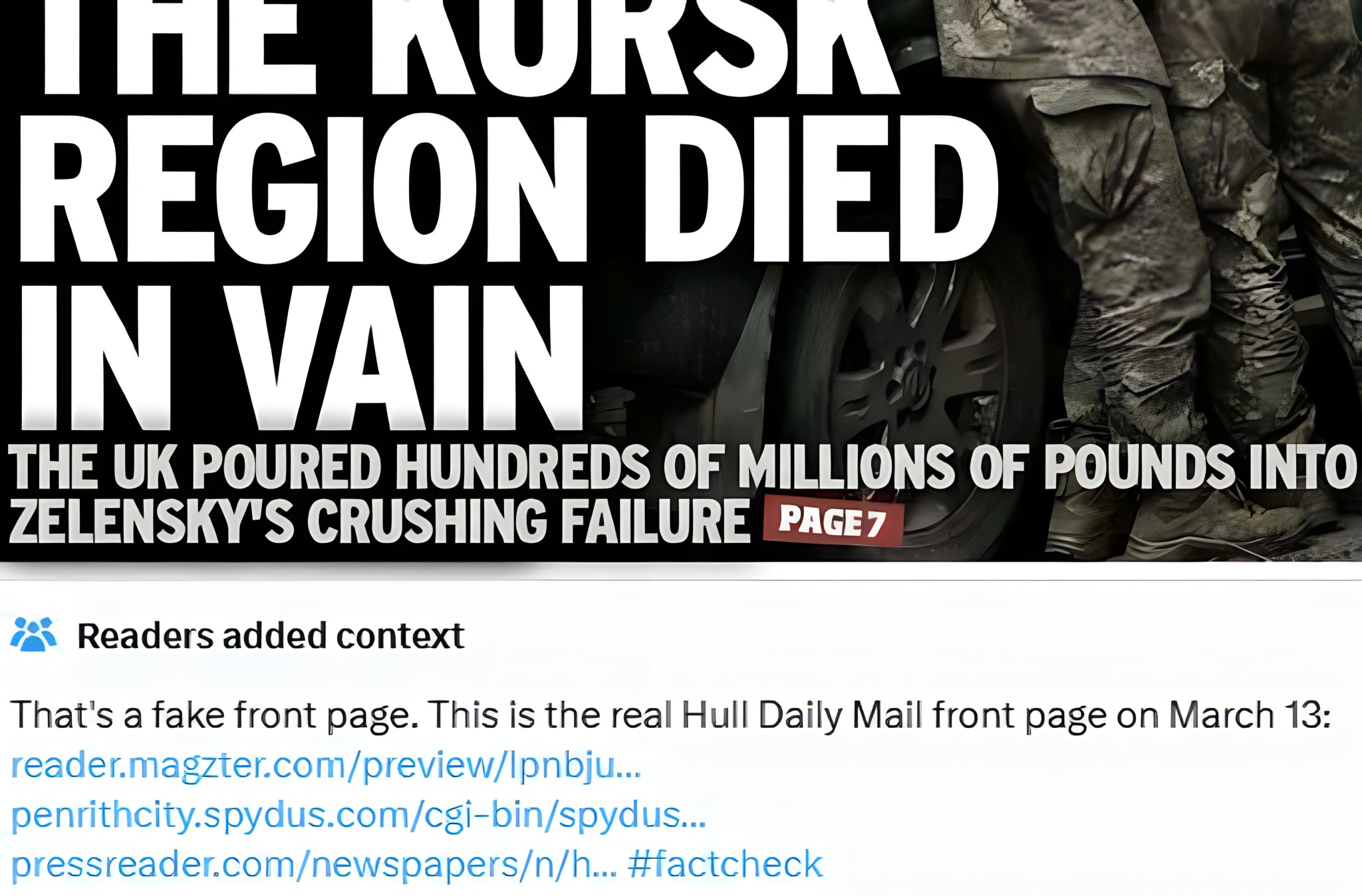 The false front page was soon flagged by X’s Community Notes, which provided links to the actual Hull Daily Mail front page from March 13. These sources confirmed that the real edition of the paper contained no such story, exposing the attempt at manipulation.