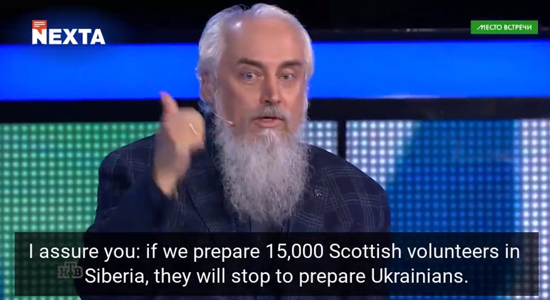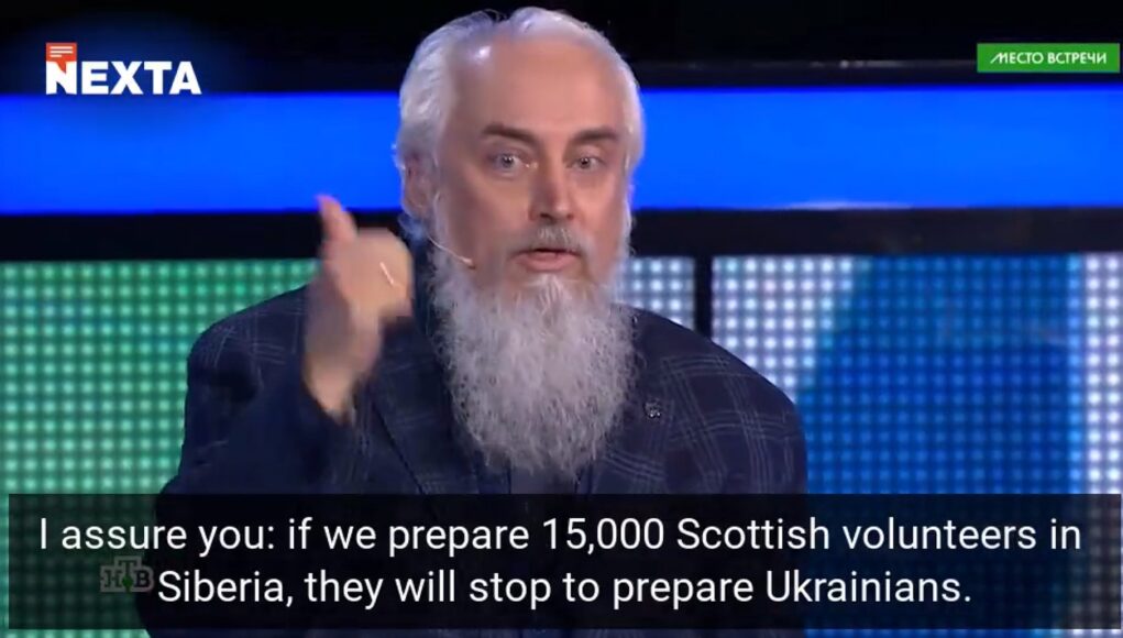 The video clip, which has since gone viral, features a Russian “expert” stating, “I do not understand why we do not train Scottish terrorists. I assure you, if we prepare 15,000 Scottish volunteers in Siberia, they will stop preparing Ukrainians.”