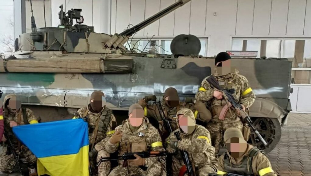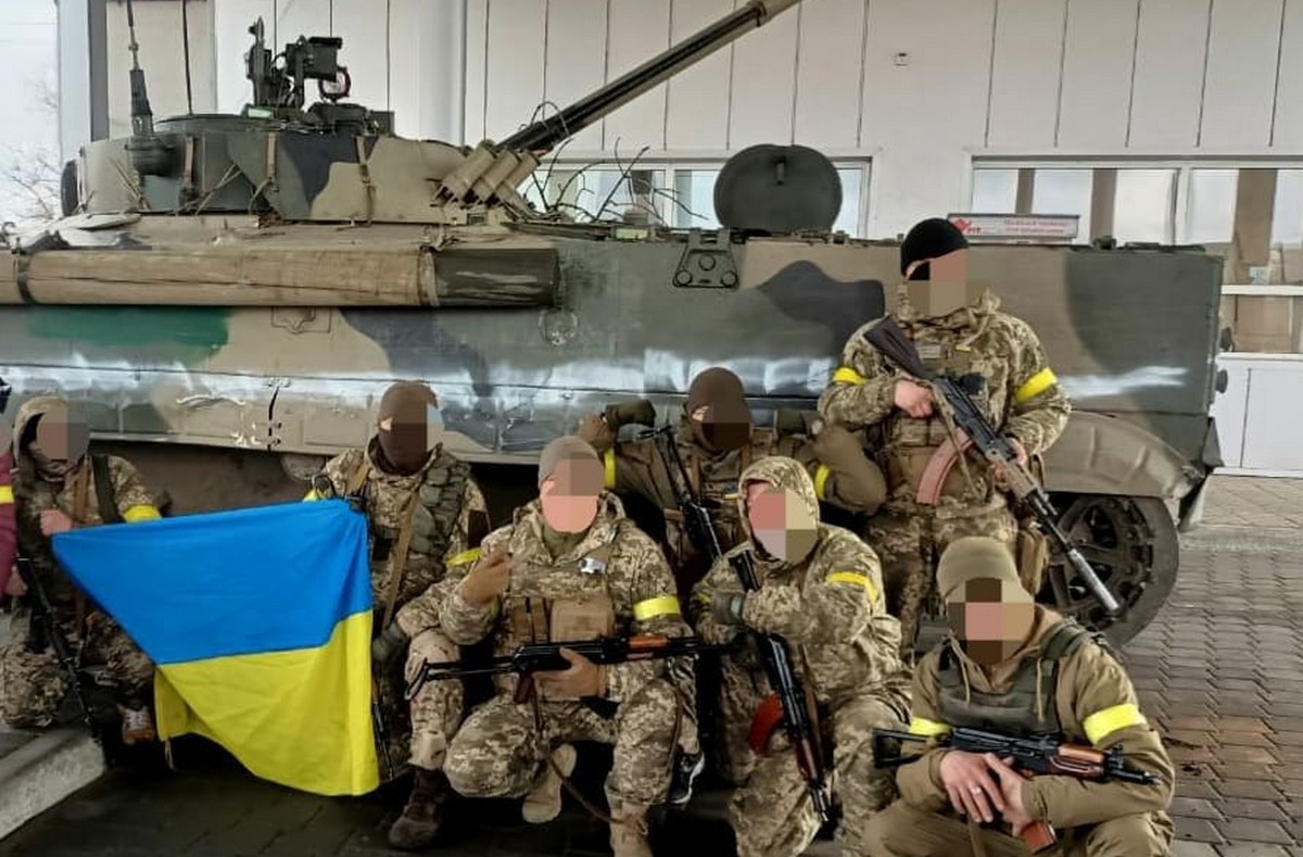 I may have it all wrong, but don’t the Ukraine Army have the “yellow” armband, so one might assumed that it is a captured vehicle, with the standard “squaddie happy snap” being taken.