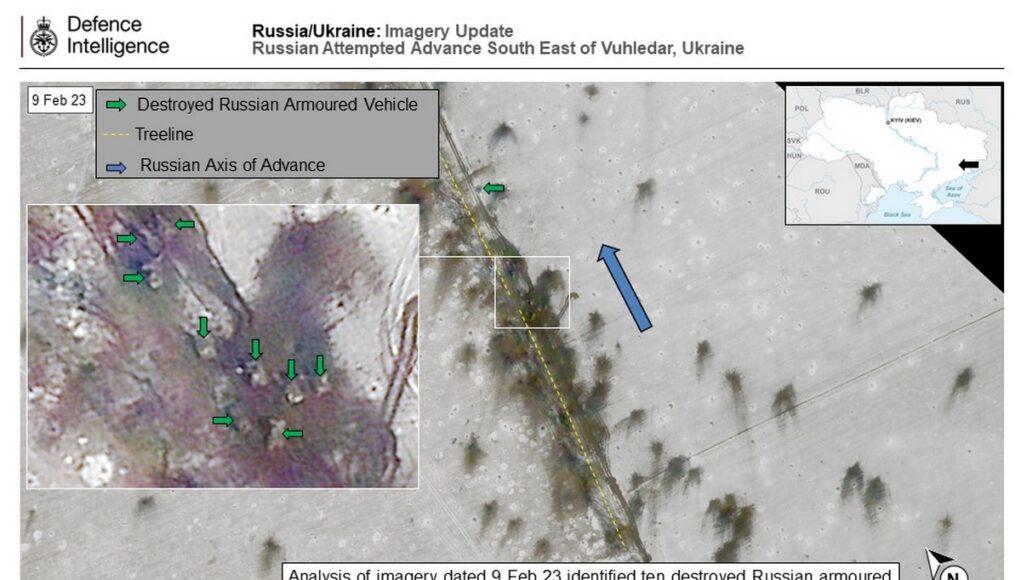 “Imagery shows concentrated Russian vehicle losses in the Vuhledar sector of Donetsk Oblast. These vehicles were likely elements of Russia’s 155th Naval Infantry (NI) Brigade which has been at the forefront of recent costly offensives. NI is seen as an elite infantry force within the Russian military.