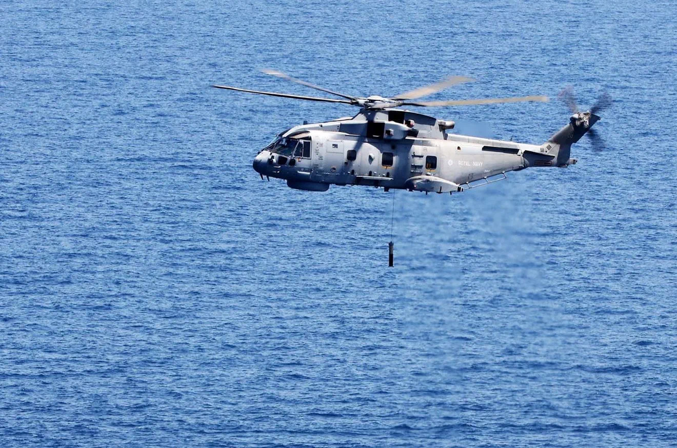 Merlin Mk2 helicopters combine multiple sensing methods, including an onboard dipping sonar, with deployed sonobuoys to form a networked acoustic picture of the undersea environment. “The Merlin carries a dipping sonar which, in combination with sonobuoys, creates an acoustic network to hunt for and track adversary submarines,” Hall said, adding that aircraft can be armed with Sting Ray torpedoes “to eliminate that threat if necessary.”