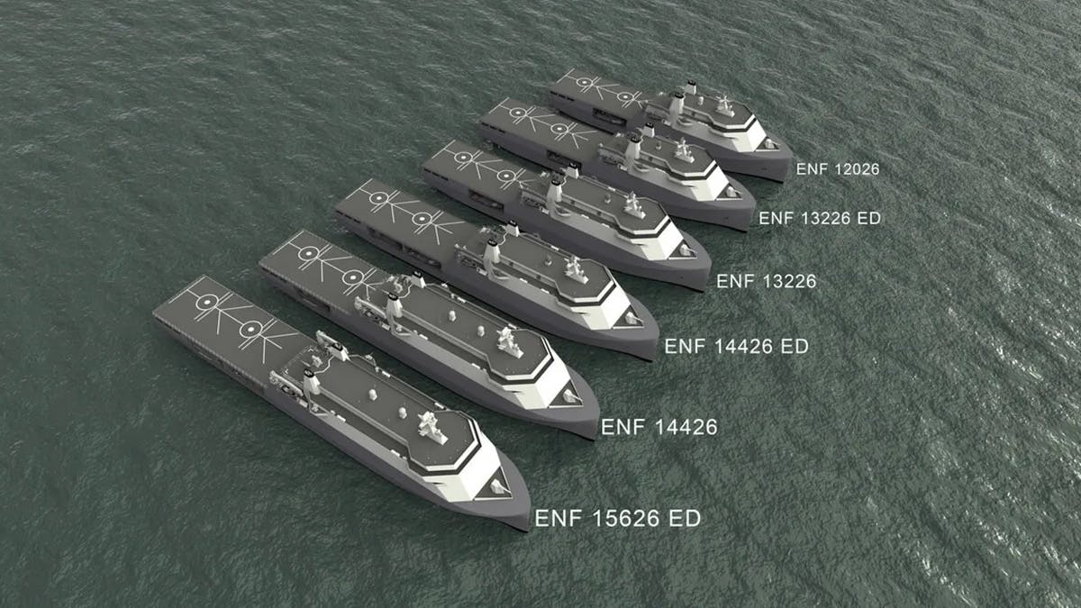 The Damen Enforcer family of hulls can be tailored with different superstructures and internal layouts, with vehicle and cargo decks that can be reconfigured or containerised to create the kind of modular mission bays the Royal Navy is seeking. The aviation facilities are already generous, with large flight decks and hangars able to support multiple helicopters, and the largest variants designed to operate Chinooks – a good match for the emphasis on heavy-lift and UAV integration.