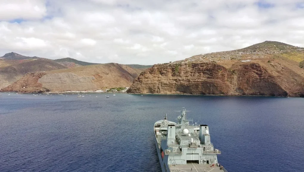 This was the first Royal Fleet Auxiliary visit to the territory since tanker Gold Rover’s stop a decade earlier. The RFA said isolation has shaped daily life on the island to the point where many children had never seen a helicopter before Tidespring’s Merlin appeared overhead. The aircraft is assigned to 814 Naval Air Squadron and has been embarked throughout the deployment to conduct general tasks as well as anti-submarine duties. It flew ahead of the ship to record imagery and give crew members a view of the island.