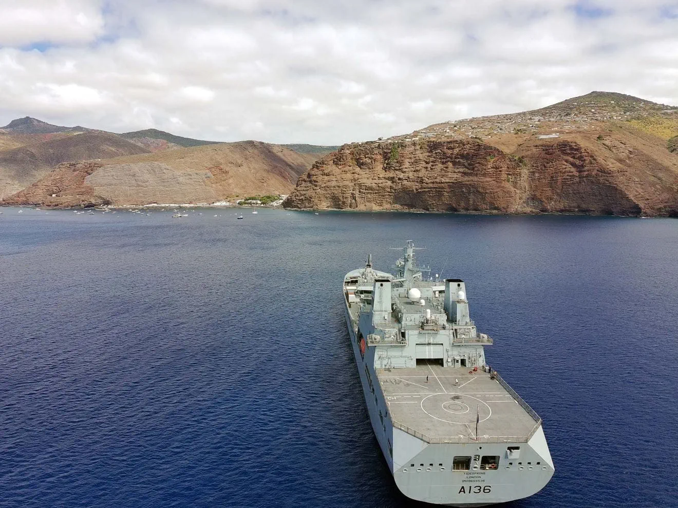 According to the release, she detached from the strike group in the Indian Ocean and continued independently, calling at Cape Town before heading north along the west coast of Africa. St Helena, with a population below 4,500 and more than one thousand miles from the nearest mainland, was unreachable by air until its airport opened ten years ago.