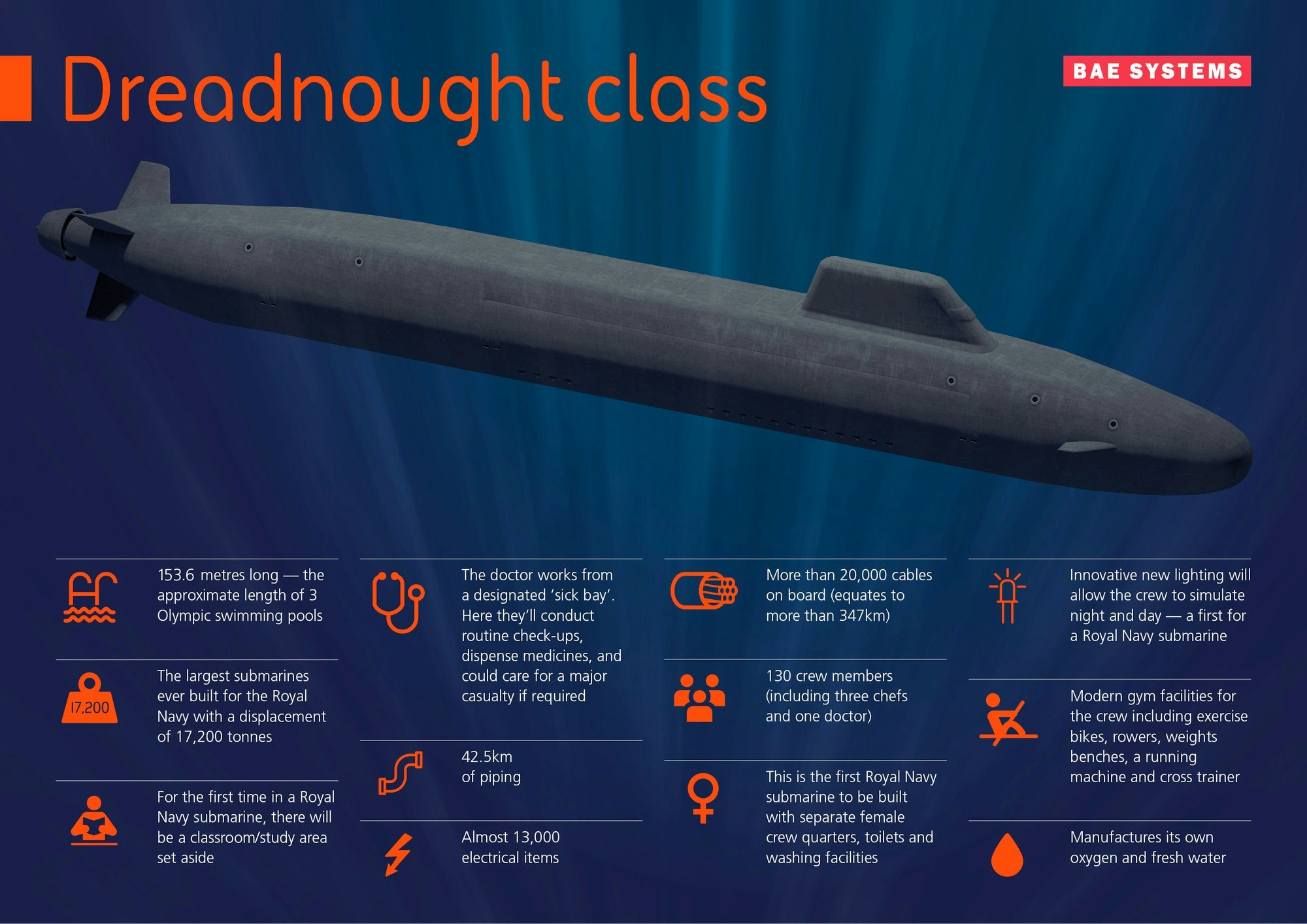 The Dreadnought class will replace the Vanguard class submarines from 2028 onwards and will host the United Kingdom’s nuclear deterrent.