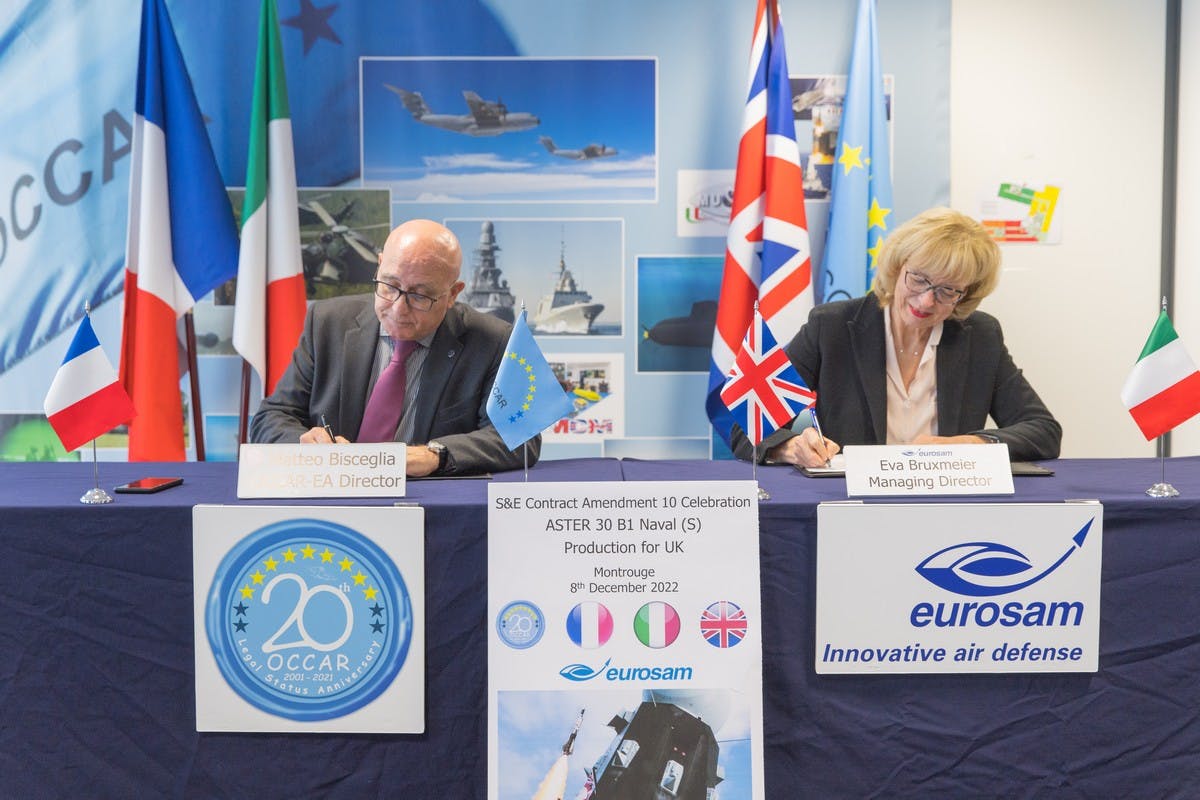 The contract, which was signed by the OCCAR-EA Director on behalf of the UK MoD, will see the UK join a multi-national partnership with France and Italy for the production of the Aster missile system.