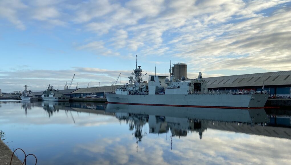 the one that we can see well is HMCS Frederickton and is a Canadian Halifax-Class frigate.