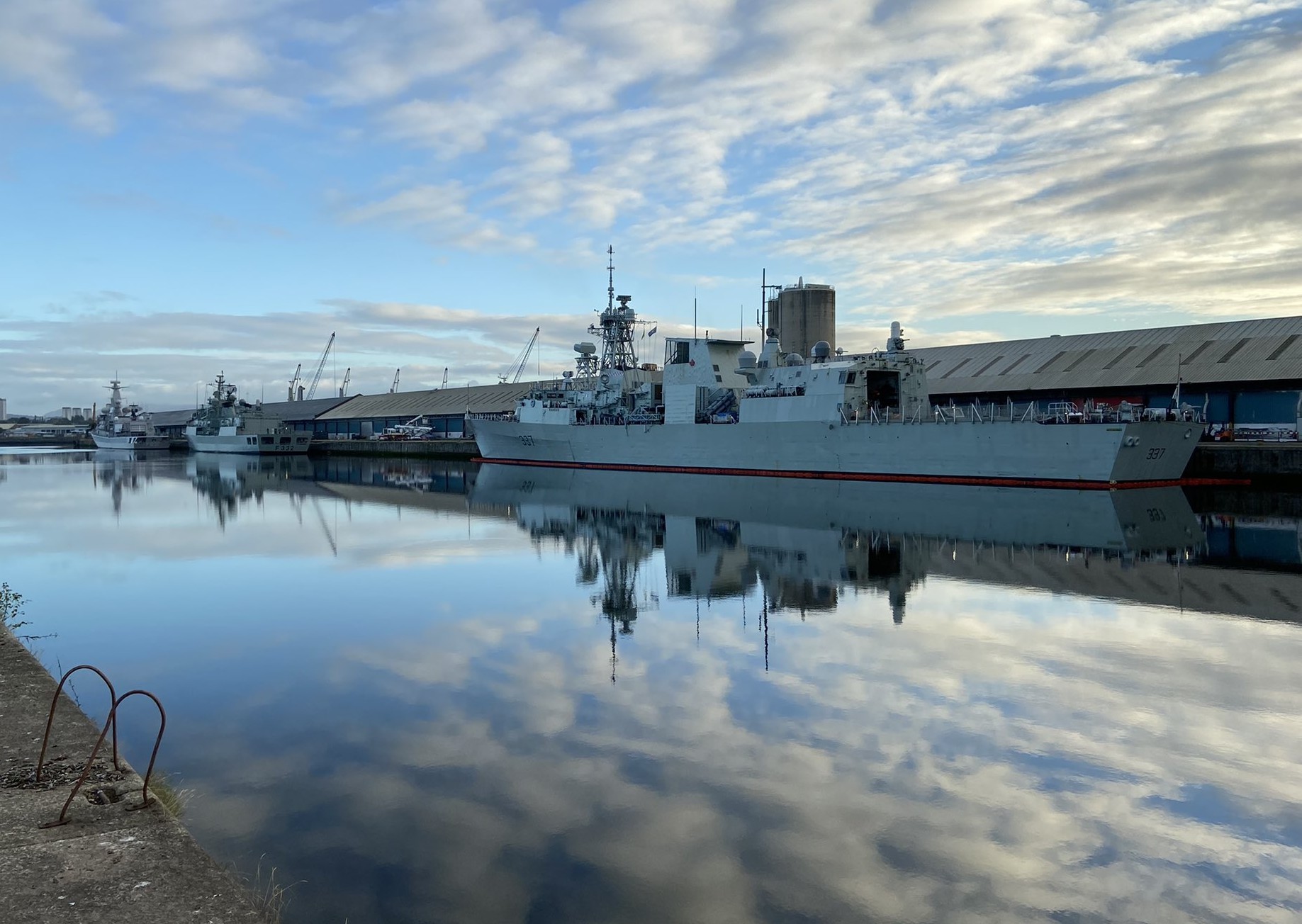 Good morning from #Glasgow KGV dock @PeelPorts with @COM_SNMG1 already alongside, we eagerly await the arrival of @SNMCMG1 @COM_SNMCMG1 @NATO_MARCOM #StrongerTogether #JointWarrior #DynamicMariner @RoyalCanNavy @MarinhaPT @kon_marine #Scotland #NATO pic.twitter.com/5twuJxG8rP