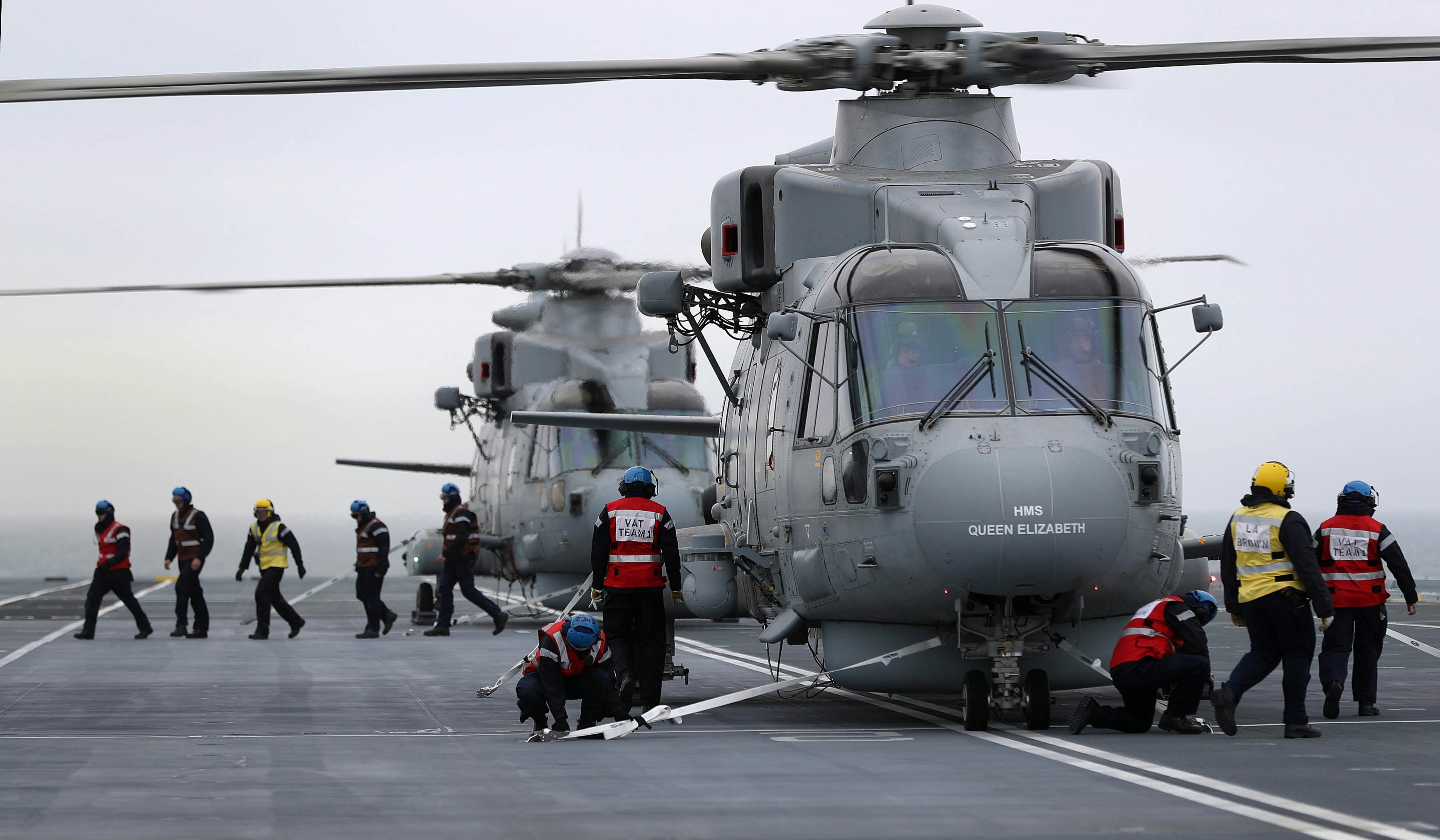 In addition to the joint force of Royal Air Force and Royal Navy F-35Bs and their pilots, the air wing is expected to be composed of a ‘Maritime Force Protection’ package of nine anti-submarine Merlin HM2 and four or five Merlin for airborne early warning; alternatively a ‘Littoral Manoeuvre’ package could include a mix of RAF Chinooks, Army Apaches, Merlin HC4 and Wildcat HM2. We understand that vessel would still carry at least one F-35 squadron aboard in such circumstances to offer air defence as well as support to the helicopter assault activities. The Crowsnest AEW&C aircraft will come from a number of the embarked Merlins (any of which can be fitted with the sensor package), the number again scaling with requirements.